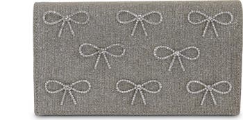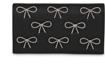 Dazzle with the seriously embellished crystal bow flap clutch. Perfect bridal handbag for your special day and more. This slim size clutch adds a touch of sparkle with its multiple modernist crystal bows.