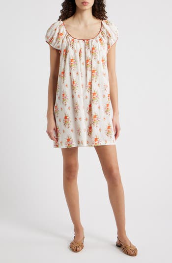 Darling puff sleeves frame this flowy flowery frock cut from breezy organic cotton.