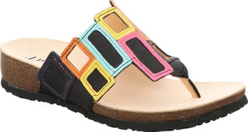 A geometric design maximizes the mod style of this handmade sandal grounded by a contoured, arch-supporting footbed.
