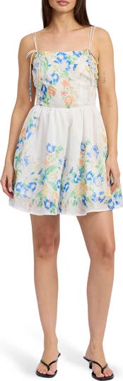 Suspended by slinky spaghetti straps, this airy chiffon romper is made with an enchanting bloom print and finished with flowy shorts.