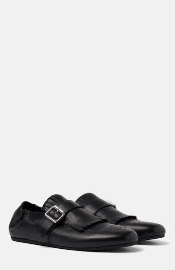 Julian reimagines the classic men's dress shoe with a relaxed, contemporary spirit. Handcrafted from calfskin leather, this deconstructed monk style merges refined tailoring codes with a flexible design built for everyday comfort. The fringed strap with a single side buckle is paired with elegant brogue perforations, evoking the timeless appeal of traditional footwear. A soft structure, elasticated heel, and ultra-light rubber sole ensure a practical and versatile fit.