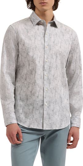 Tailored from breathable, stretch-enhanced cotton, this geometric-patterned shirt features a crisp collar and a lower hem that stays tucked and looks great if you leave it hanging out. Button the adjustable cuffs for everyday or use your own cuff links to add an elevated-casual finish.