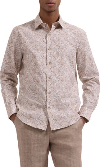 Tailored from soft, breathable cotton, this leaf-scattered shirt features a crisp collar and a lower hem that stays tucked and looks great if you leave it hanging out. Button the adjustable cuffs for everyday or use your own cuff links to add an elevated-casual finish.