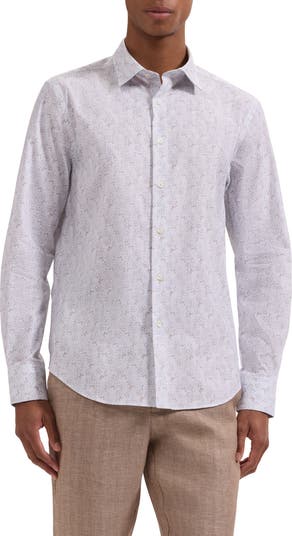 Tailored from soft, breathable cotton, this flower-scattered shirt features a crisp collar and a lower hem that stays tucked and looks great if you leave it hanging out. Button the adjustable cuffs for everyday or use your own cuff links to add an elevated-casual finish.