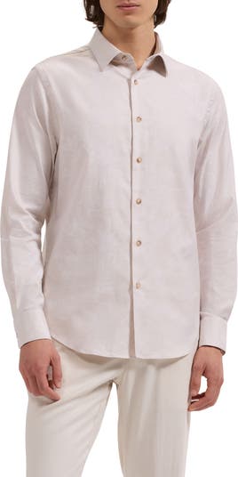 Tailored from stretch-enhanced cotton jacquard, this floral-patterned shirt features a crisp collar and a lower hem that stays tucked and looks great if you leave it hanging out. Button the adjustable cuffs for everyday or use your own cuff links to add an elevated-casual finish.