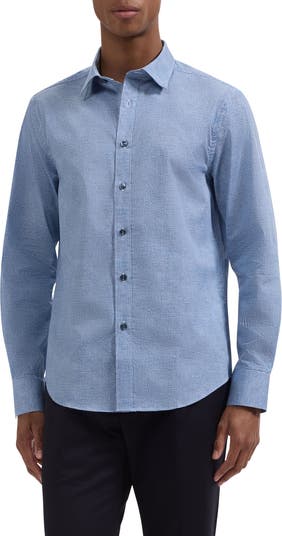 - Bugatchi's Shaped Fit is slightly trimmer than their Regular fit; but still cut with a little extra room allover.