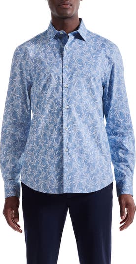 Julian Shaped Fit Leaf Print Cotton Button-Up Shirt