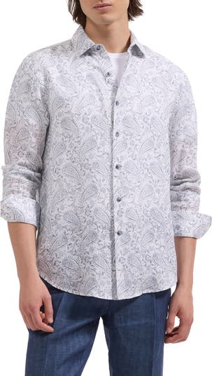 Cut from lightweight, breathable linen with a neat paisley pattern, this button-up is designed with a subtly curved hem that looks great whether you wear it tucked or untucked.