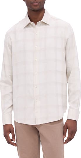 Effortlessly transition from office hours to happy hour in a long-sleeve button-up designed with a clean French placket and a subtle windowpane plaid pattern.