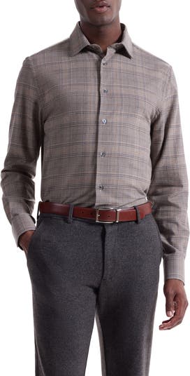 Tailored from a luxe cotton and wool blend, this plaid shirt features a crisp collar and a lower hem that stays tucked and looks great if you leave it hanging out. Button the adjustable cuffs for everyday or use your own cuff links to add an elevated-casual finish.