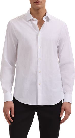 - Bugatchi's Shaped Fit is slightly trimmer than their Regular fit; but still cut with a little extra room allover.