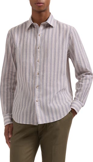 Julian Shaped Fit Stripe Cotton & Linen Button-Up Shirt