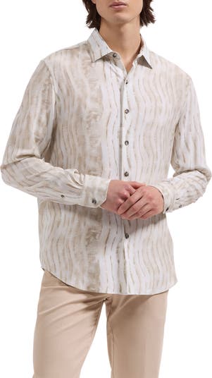Tailored from silky, sustainably produced viscose, this shirt patterned in abstract waves features a crisp collar and a lower hem that stays tucked and looks great if you leave it hanging out. Button the adjustable cuffs for everyday or use your own cuff links to add an elevated-casual finish.