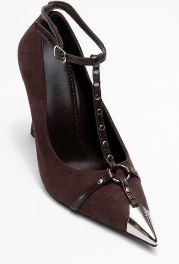 An elegant heeled silhouette that balances delicate refinement with modern metallic detailing