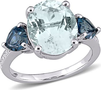 Aquamarine, Topaz & Diamond 3-Stone Ring