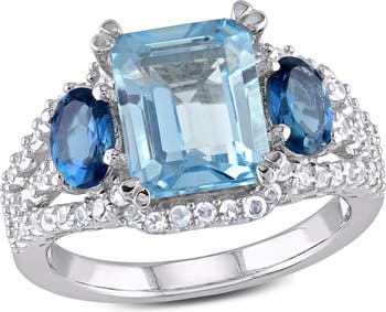 Julianna B. Blue Topaz & Created White Sapphire 3-Stone Ring, Main, color, Topaz