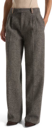 These tailored twin pleat trousers bring a refined balance of structure and modern detail. Cut from herringbone fabric, they feature twin front pleats that add volume and definition, while the straight-leg cut with pressed creases sharpens the silhouette. Finished with contrasting suede belt loops, they introduce a distinctive touch to a timeless style.