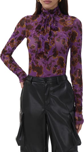Transition easily from desk to dinner in this close-fitting top made with a sophisticated high neck and a drapey tie.