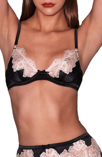 Unleash your flirty side in this luxurious silk-blend demi bra featuring contrast lace trim with frilly eyelash edges.