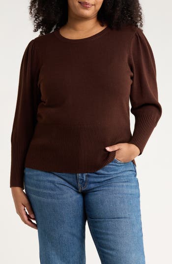 Juliet sleeves add an air of romance to this rib-trimmed sweater.