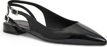 A pointy toe elongates the streamlined profile on an Italian-made flat shaped from glossy leather and secured by a pair of adjustable slingback straps.