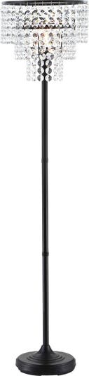 With crystal-clear glass and antique bronze plating, this Art Deco-inspired floor lamp will light up your space with an enchanting glow. Faceted crystals hanging in three tiers give the effect of a chandelier without the hard-wired installation or required high ceilings. At 60" tall, the scale is perfectly suited for a living room or bedroom.