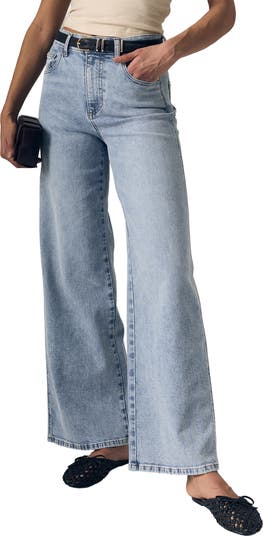 Sure to be on heavy rotation, these cleanly styled jeans are made from low-stretch denim with a superhigh waist and full-length wide legs.