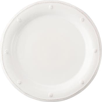Whitewash-glazed ceramic embellished with Juliska's signature berry and thread motif adds to the vintage charm of a minimalist dinner plate that effortlessly complements a wide range of décor.