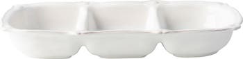 A pretty and prodigious serving dish in whitewash-glazed ceramic is embellished with Juliska's signature berry and thread motif for an old-world French feel. A trio of sections lets you display a variety of dips or present nuts and nibbles in charming rustic fashion. Best of all, you can move the server from freezer to oven to microwave and then toss it in the dishwasher for easy cleanup.