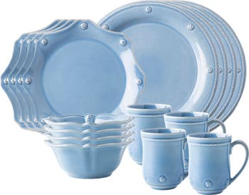 - Includes four dinner plates, four dessert/salad plates, four cereal/ice cream bowls and four mugs