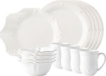 - Includes four dinner plates, four dessert/salad plates, four cereal/ice cream bowls and four mugs