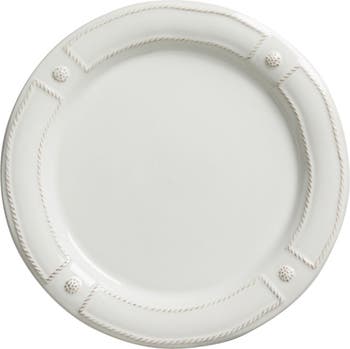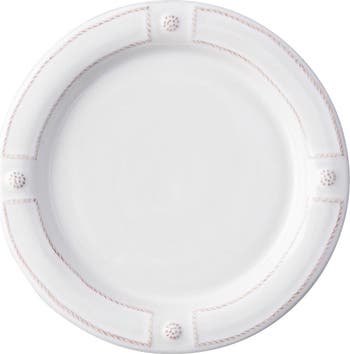 Glazed ceramic dinner plate is embellished with Juliska's signature berry and thread motif for an old-world French feel. An excellent way to lend vintage sophistication to any table setting.