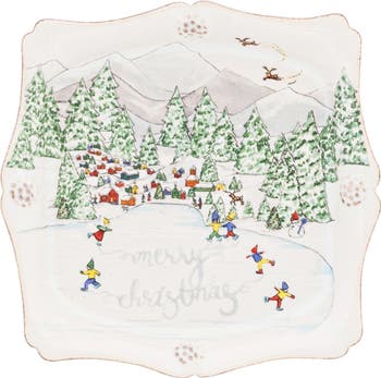 A signature berry-and-thread motif and cheerful seasonal design mark a glazed tray that's perfect for all of your holiday treats.