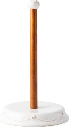 A classic whitewash-glazed ceramic base is trimmed with Juliska's delicate berry and thread motif for an Old World French feel on this paper towel holder. A hand-turned wood spool finishes the pretty look with practical utility.