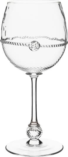 A swirling fluted wine glass set on a grand stem is elegantly adorned by a single berry and thread, while a deep bowl enhances your favorite wine.