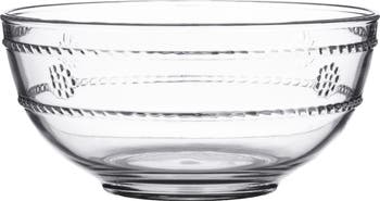 An intricate berry design adds understated sophistication to a clear bowl made from durable acrylic.