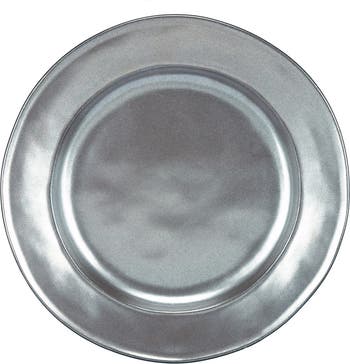 A polished silvertone finish adds old-world sophistication to a ceramic salad plate that instantly elevates any table setting.