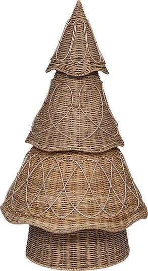 Add rustic texture and dimension to your holiday decor with this handwoven-rattan tree that brings a touch of forest magic into your home. It easily disassembles and nests for easy storage when not on display.