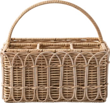 Carrying flatware and napkins to the table—indoors or out—is a much more charming task with this lightly whitewashed rattan basket.