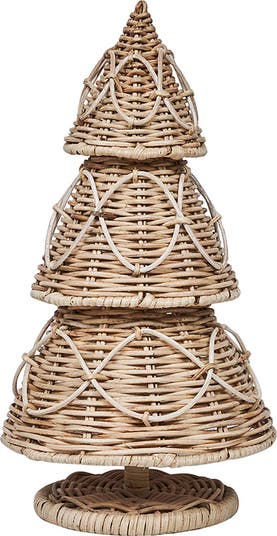 Perfectly sized to decorate tables, shelves and fireplace mantels, this handwoven-rattan tree is a chic interpretation of the evergreen original.