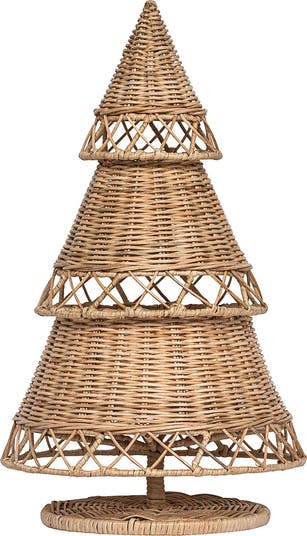 Perfectly sized to decorate tables, shelves and fireplace mantels, this handwoven-rattan tree is a chic interpretation of the evergreen original.