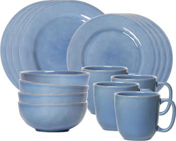 - Set includes four dinner plates, four salad plates, four bowls and four mugs