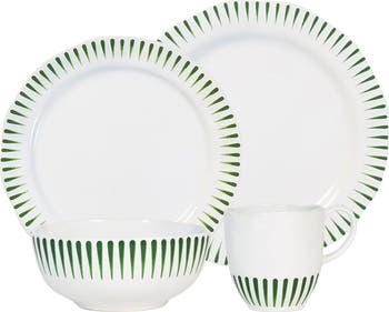 Add refreshed elegance to your dining table with this stoneware place setting styled with radiating stripes inspired by the waves in the idyllic town of Sitio.