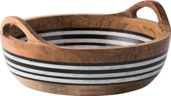Stripes of hand-marbled resin add artisanal refinement to the dappled, rustic textures of a distinctive serving bowl crafted from full-grained Acacia wood. Pair it with the matching Stonewood Stripe Salad Servers (sold separately) for a welcoming first course at any table.