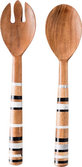 Stripes of hand-marbled resin add artisanal refinement to the dappled, rustic textures of a salad-server set crafted from full-grained Acacia wood. Pair the set with a matching Stonewood Stripe serving bowl (sold separately) for a welcoming first course at any table or present them as memorable hostess gifts.
