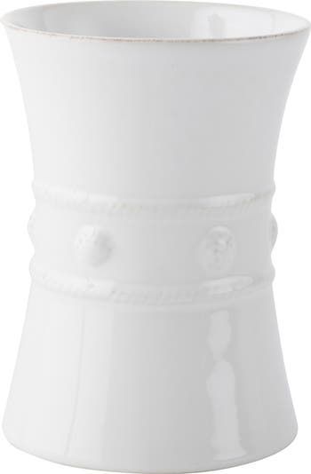 Free up drawer space while adding a refined, vintage element to your kitchen décor with a generously sized whitewash-glazed utensil crock accented with Juliska's signature berry and thread detailing for an old-world French feel.