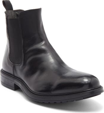 A burnished leather upper adds modern sophistication to a classic Chelsea boot grounded by a cushioned footbed and durable lug sole.