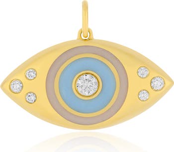 Keep the good vibes flowing your way with this jumbo-sized evil-eye charm made from high-shine 14-karat gold detailed with glittering round-cut diamonds.