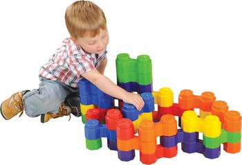 18 months & up. Spark your child's inner architect with these colorful octagonal blocks. These sturdy, double octagon blocks are easy to stack and the jumbo size makes them ideal for the beginning builder. Watch their imagination soar! Children can follow their own plan, or they can share a friend's vision and work together to create something they never dreamed of. The plastic blocks are great for inside or outdoor block play. Includes 6 colors, 6 of each.
