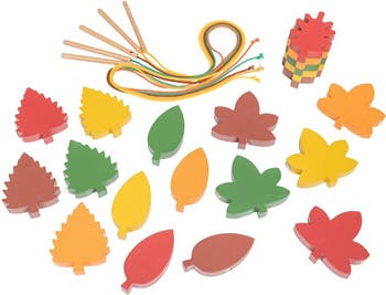 3 years & up. Explore how leaves change with the seasons while building fine motor skills and sequencing practice. Kids can lace leaves by color or type, sort them, or create colorful garlands to hang or display. Each leaf can also stand upright for added play options. Set includes 20 leaves in 5 colors and 5 cotton laces with chunky aglets for easy threading. Leaf shapes include Maple, Oak, and more-crafted from FSC® certified plywood for durability and sustainability.
